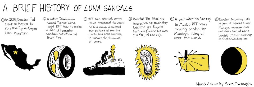 History of Luna Sandal Company, used on all of their retail sandal boxes.