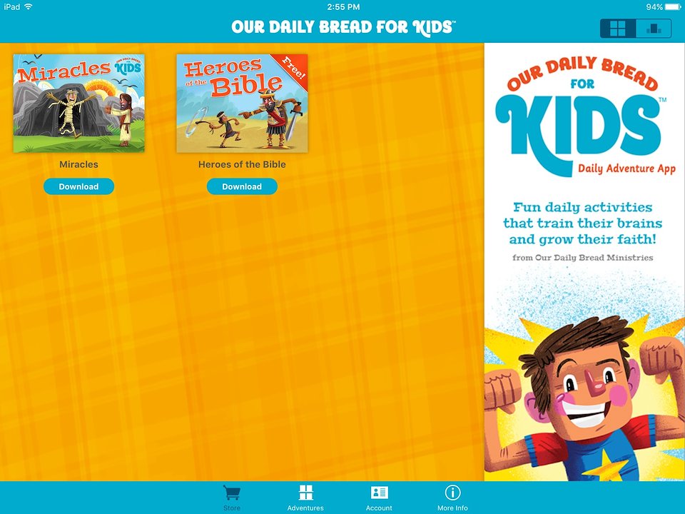 The Our Daily Bread for Kids app was created using the Aquafadas Digital Publishing tools for InDesign. Each devotional is published on a monthly basis.