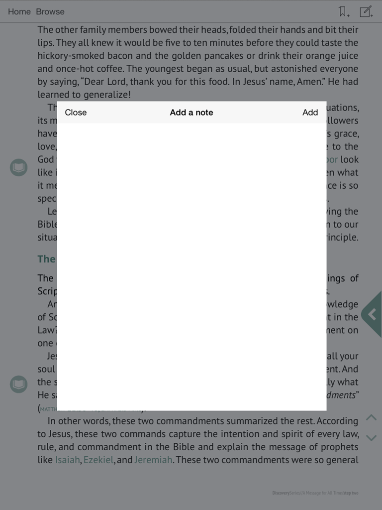 The Discovery Series App has interactive issues of digital magazines, each allows users to add their own thoughts as they work through each issue.
